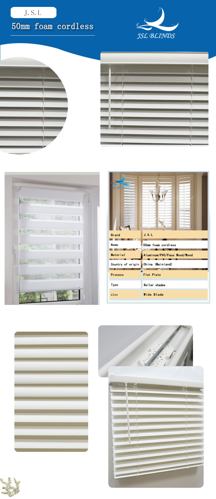50mm コードレス フォーム ブラインドは、多用途性と耐久性を備えたブラインドまたはウィンドウ トリートメントの最終的な選択肢です。これらのシャッターは価格も手頃で、実用的でシンプルですが魅力的です。黒、白、茶色、アイボリー、ナチュラルなど豊富なカラーバリエーションを揃えております。PVCのモダンでファッショナブルな外観、デザイナーズカラー、刺激的なメタリック塗装により、個性を発揮し、あらゆる空間(商業空間)に活力と個性をもたらします。またはプライベート)。当社の工場を訪問し、カーテンについて学んでください。